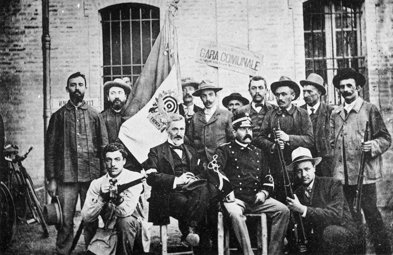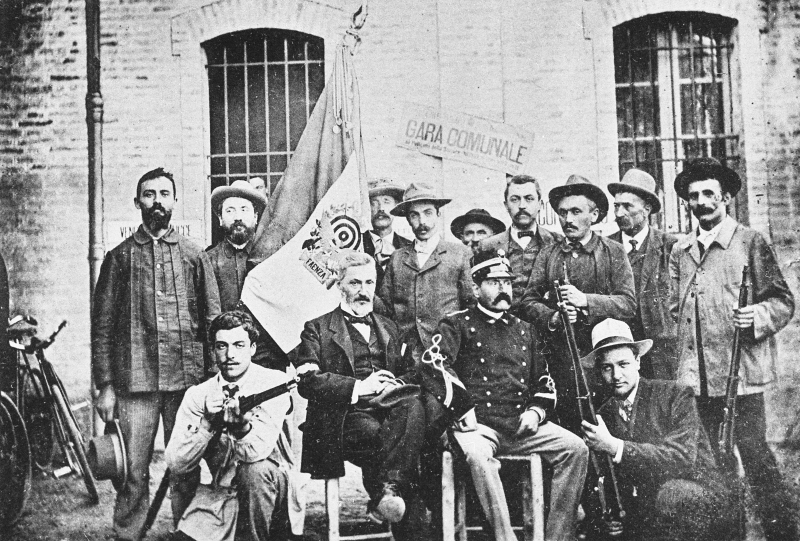 La Società di Tiro a Segno al campo di tiro in Via S.Martino, da sinistra: Ugo Bubani,Tonioli (farmacista), uno sconosciuto,Sansoni (farmacista), uno sconosciuto, Battista Vespignani, due sconosciuti, Pompeo Riva. sotto: Alfredo Gordini, Senatore Caldesi, Brighenti (ufficiale dell'essercito, direttore del Tiro a Segno), Pasi (il padre della moglie è Nino Mita)Ulteriori informazioni