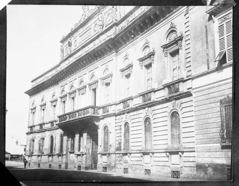 La facciata in stile barocco è opera dell'ingegnere Antonio Cicognani. Il palazzo apparteneva al Conte Filippo Strozzi. L'immagine è una cartolina dell'editore Ortali che fu spedita il 20/08/1900 e fa parte della collezione Maestro Giuseppe Emiliani. Il palazzo ha ospitato la sede dell'Istituto d'arte per la ceramica "G. Ballardini". Dal 2013 ospita le classi a indirizzo Artistico del Liceo Torricelli di FaenzaUlteriori informazioni