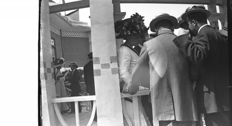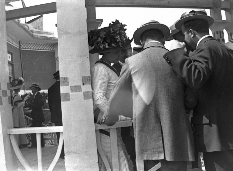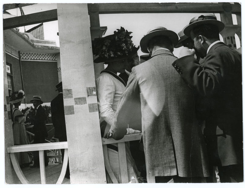 La Signora in primo piano è la moglie dell'artista Marcello Dudovich, la Signora in secondo piano è moglie di Giovanni Guerrini, qui con i rispettivi. Vittorio Pica, critico d'arte, è a fianco della Sig.ra Dudovich.Ulteriori informazioni