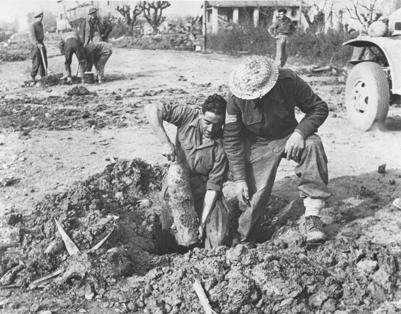 Rimozione mine tedesche sulla Via Emilia presso Cosina (incrocio con Via Carbonara e Via Corleto)