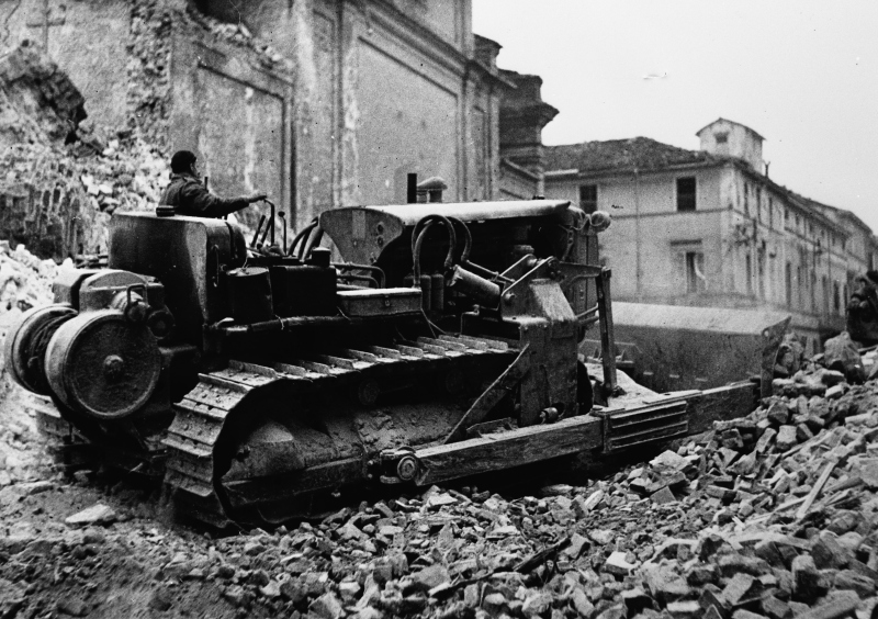 Eighth Army - Faenza On the heels of the Infantry, New Zealand sappers set to work to clear the roads of Faenza for traffic. Eighth Army - Faenza Nelle retrovie della fanteria, i genieri neozelandesi al lavoro per ripulire le strade di Faenza per permettere la circolazione.