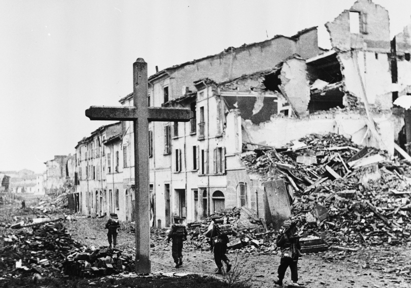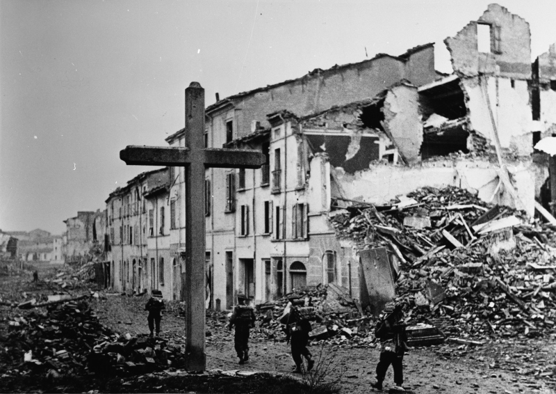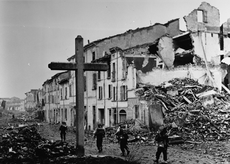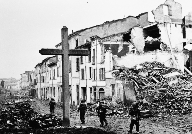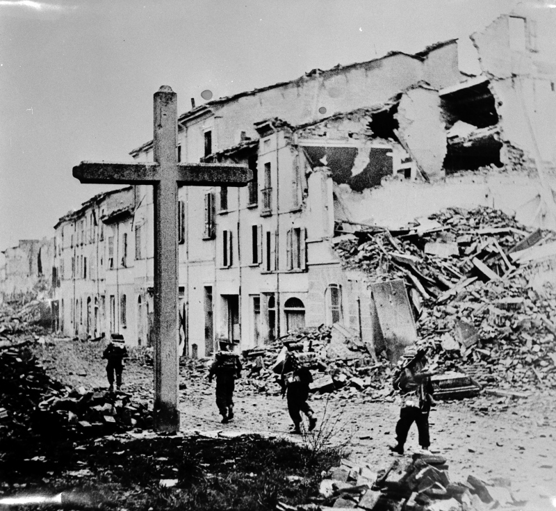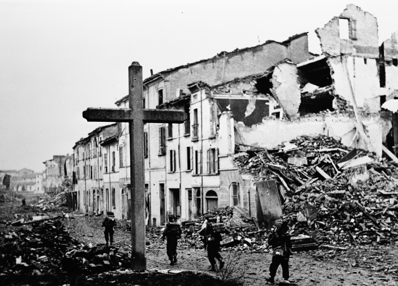 Eighth Army - Fall of Faenza New Zealand Infantrymen move cautiously through the outskirts of Faenza. Eighth Army - Caduta di Faenza Fanti neozalendesi procedono con cautela nella periferia di Faenza.Donazione: