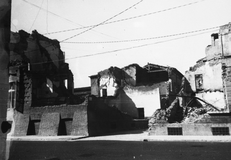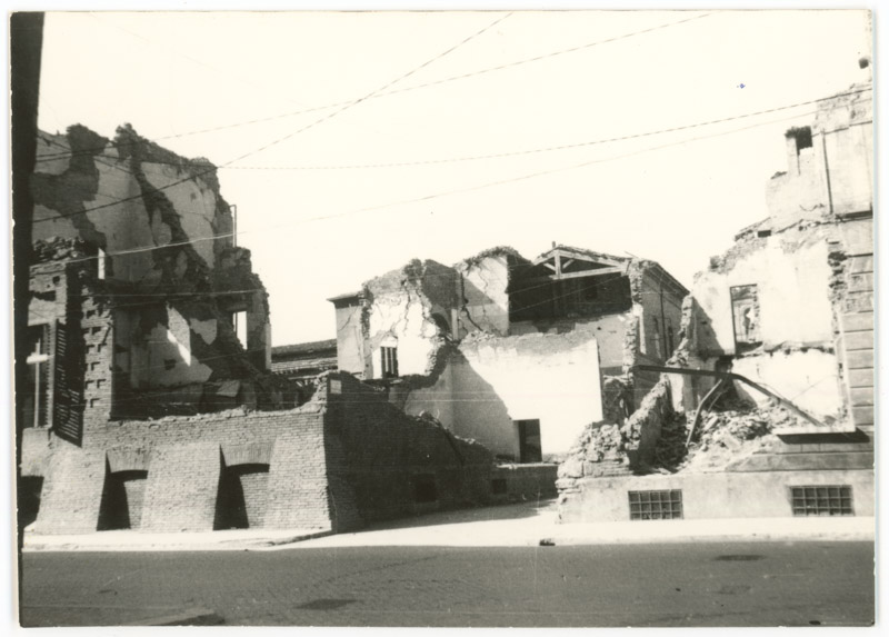 Macerie di Palazzo Mazzolani e Palazzo Bubani in corso Mazzini.Datazione: