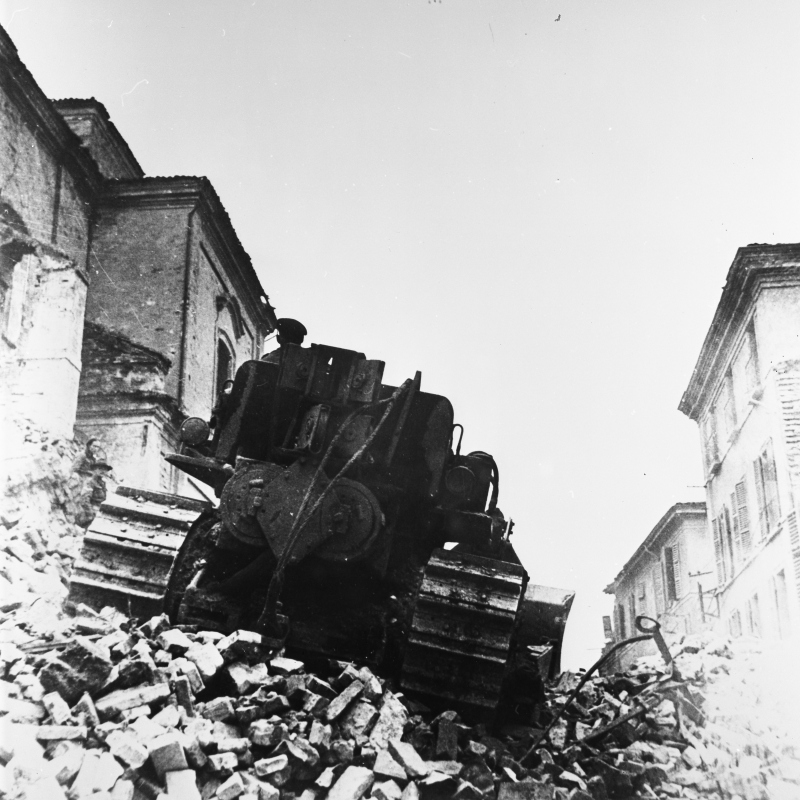 Eighth army - Faenza. On the heels of the Infantry, New Zealand sappers set to work to clear the roads of Faenza for trafficDonazione:
