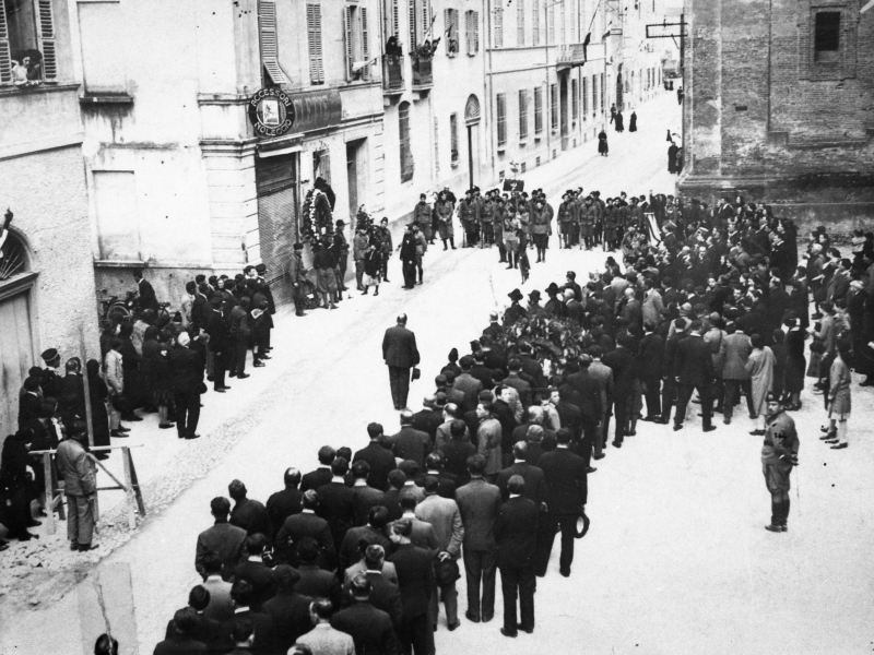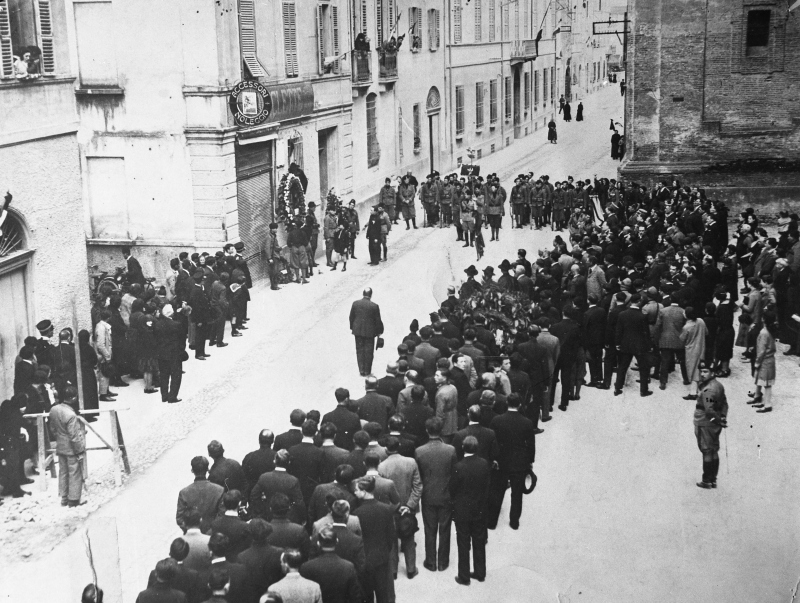 Manifestazione davanti alla lapide ricordo di Ghinassi e Volterra