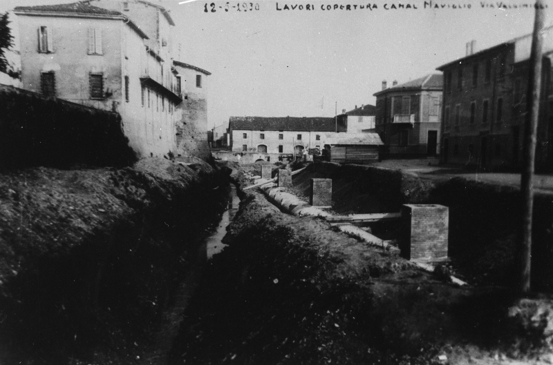 Lavori di copertura del Canale Naviglio da porta Ravegnana a porta PiaDatazione: