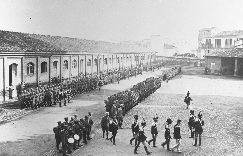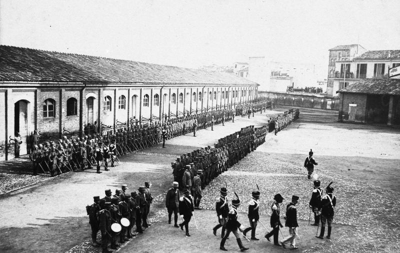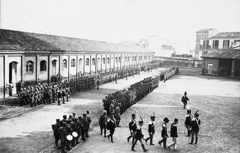 Veduta del giuramento dei dragoni all'interno della caserma di San DomenicoDatazione: