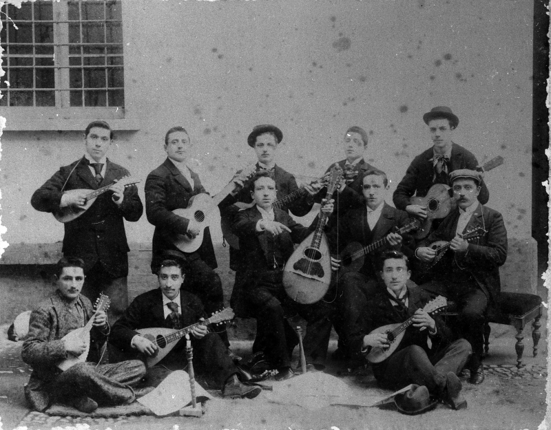 Ritratto di gruppo dei componenti dell'Orchestra Plettro. Ricci (capomastro), Baldini, Piazzoli, Campoli, Gorini, Gian Peretti (?), Mantellini, Morelli (?)Datazione: