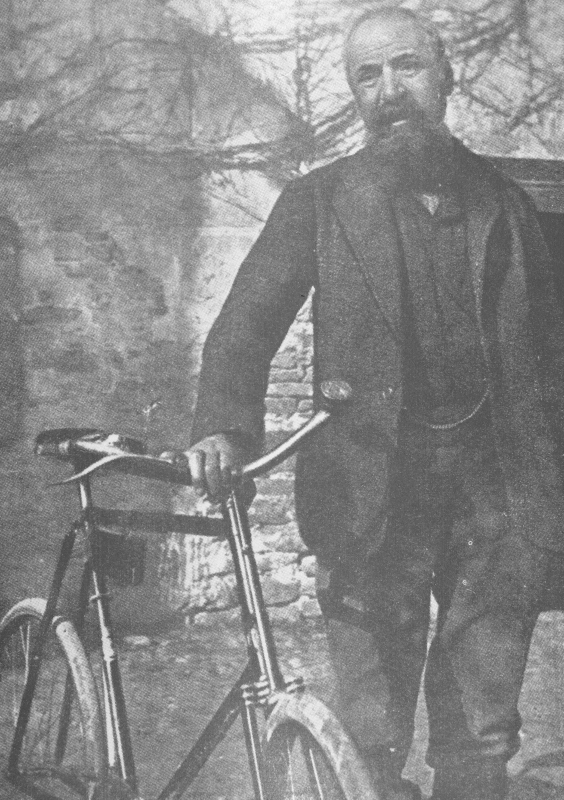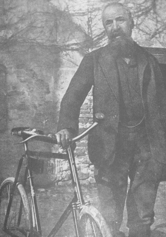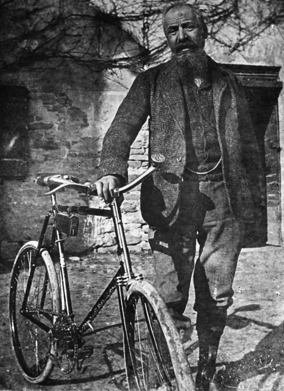 Ritratto di Alfredo Oriani con la sua bicicletta, successivamente esposta al CardelloDatazione: