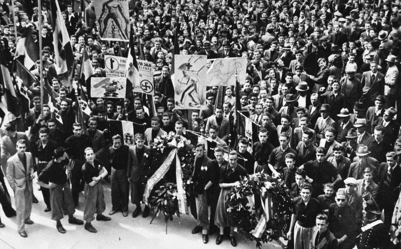 Manifestazione fascista di studenti in Piazza Umberto ISoggetto:
