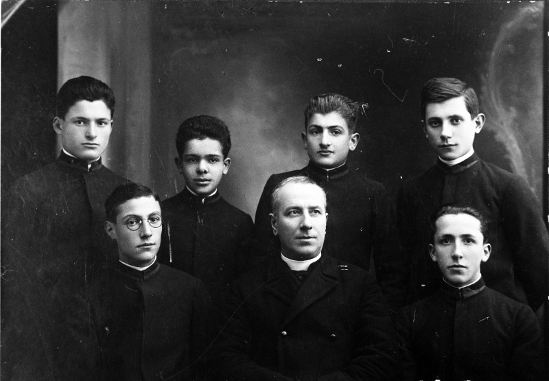 Don Vincenzo Liverani con alcuni ospiti dell'orfanotrofioSoggetto: