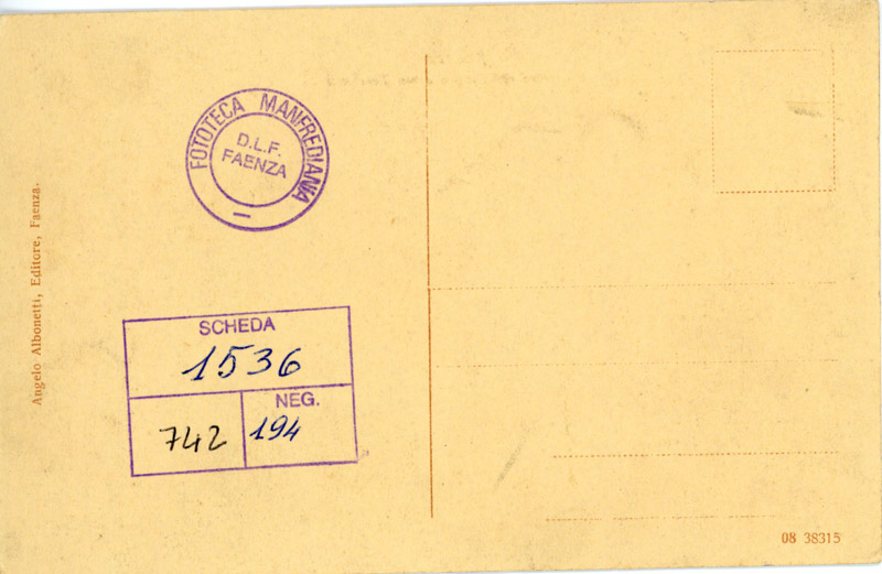 Facente parte della serie "Faenza Antica", 25 cartoline tratte dalle incisioni di Romolo Liverani edite da Angelo Albonetti.Ulteriori informazioni