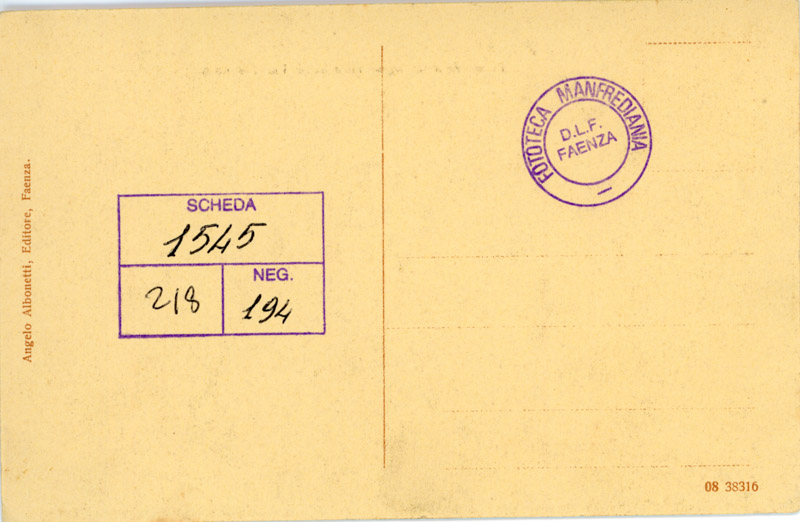 Facente parte della serie "Faenza Antica", 25 cartoline tratte dalle incisioni di Romolo Liverani edite da Angelo Albonetti.Ulteriori informazioni