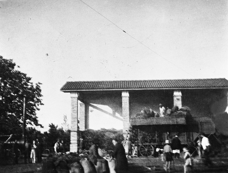 Fotografia che ritrae la realtà della civiltà contadina, in questo caso la trebbiaturaDatazione: