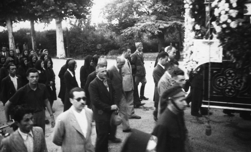 Corteo funebre in Strada dell'Osservanza (oggi Viale Marconi) al funerale di Clemente Ghiraldi, ucciso il 26 Luglio 1943Datazione: