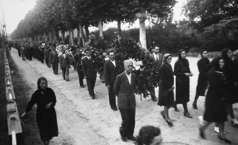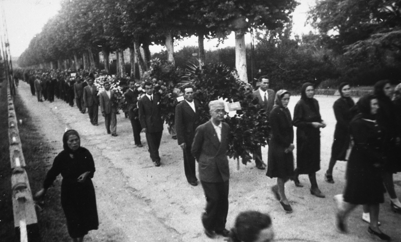 Corteo funebre in Strada dell'Osservanza (oggi Viale Marconi) al funerale di Clemente Ghiraldi, ucciso il 26 Luglio 1943Datazione:
