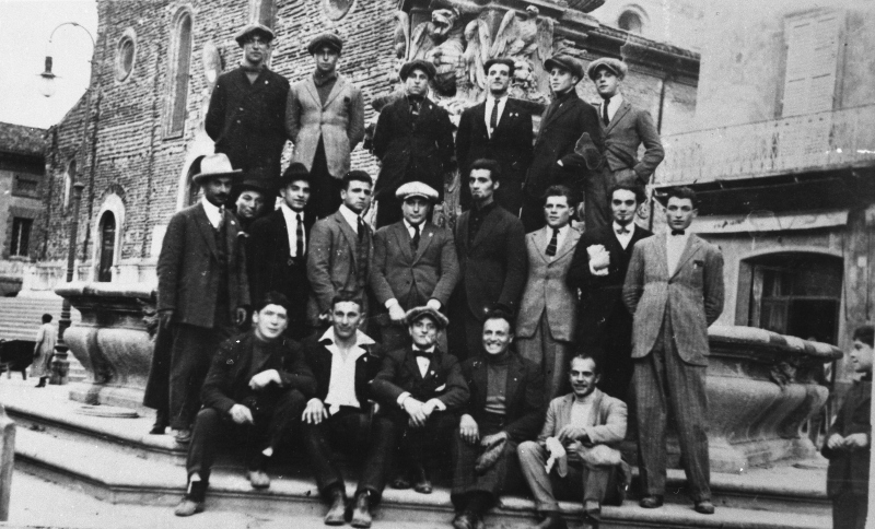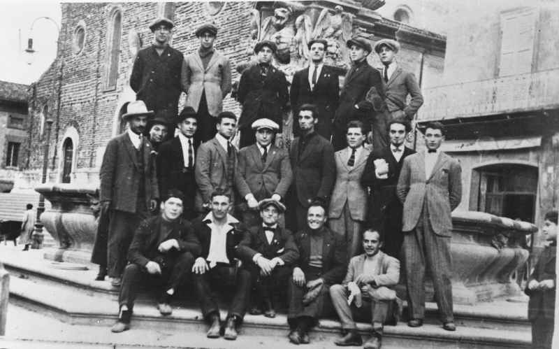 Ritratto della squadra di lotta in Piazza Umberto I in occasione dell'incontro tra Faenza e BolognaDatazione: