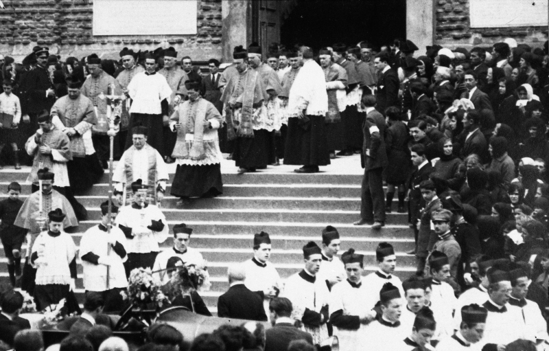 I parroci sfilano fuori dalla Cattedrale in occasione della processione della Sacra Reliquia del braccio di San Francesco Saverio