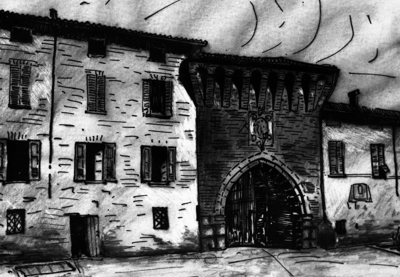 Porta Montanara dall'esterno prima della separazione dal Palazzo Baroni