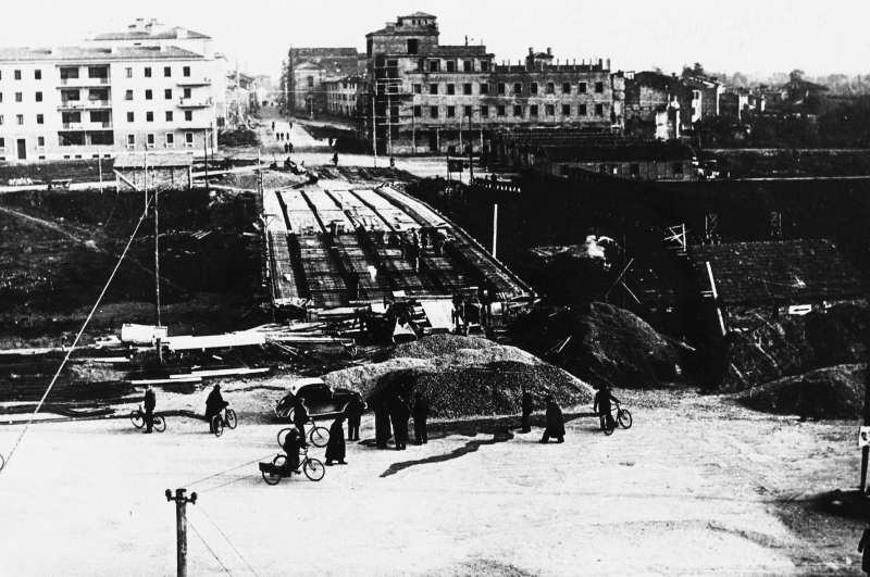 Ripresa del Ponte delle Grazie durante la ricostruzioneDatazione: