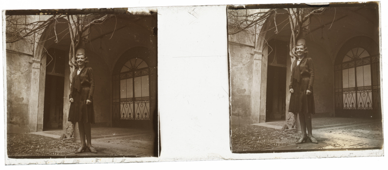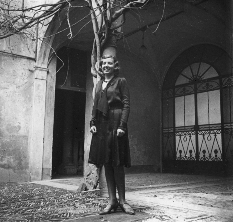 Fotografia di ragazza nel cortile di Casa Grecchi in Corso MazziniDatazione: