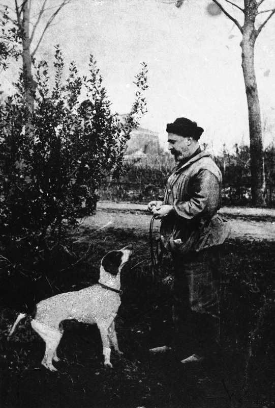 Cacciatore accompagnato da un cane da caccia