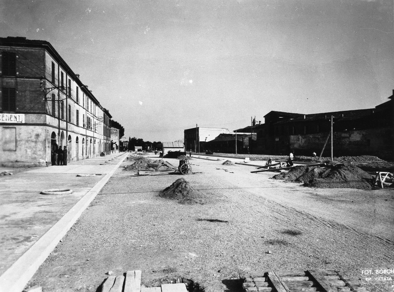 Lavori di realizzazione del viale B. Mittarelli, oggi delle Ceramiche. Sorto a seguito del riempimento della vasca del Borgotto.Donazione: