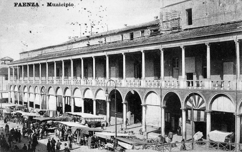 Ripresa del Municipio in piazza del Popolo, con il mercatoDatazione: