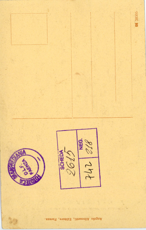Facente parte della serie "Faenza Antica", 25 cartoline tratte dalle incisioni di Romolo Liverani edite da Angelo Albonetti.Ulteriori informazioni