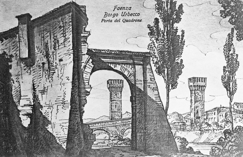 Faenza, Borgo Durbecco, Quadrone (Lungofiume), Porta del Quadrone, Ponte Romano, Lamone (Fiume).Informazioni storico-critiche: