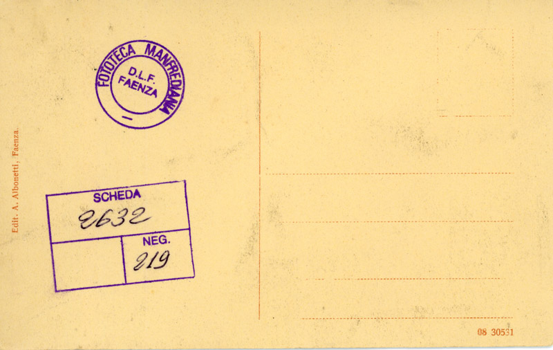 Facente parte della serie "Faenza Antica", 25 cartoline tratte dalle incisioni di Romolo Liverani edite da Angelo Albonetti.Ulteriori informazioni