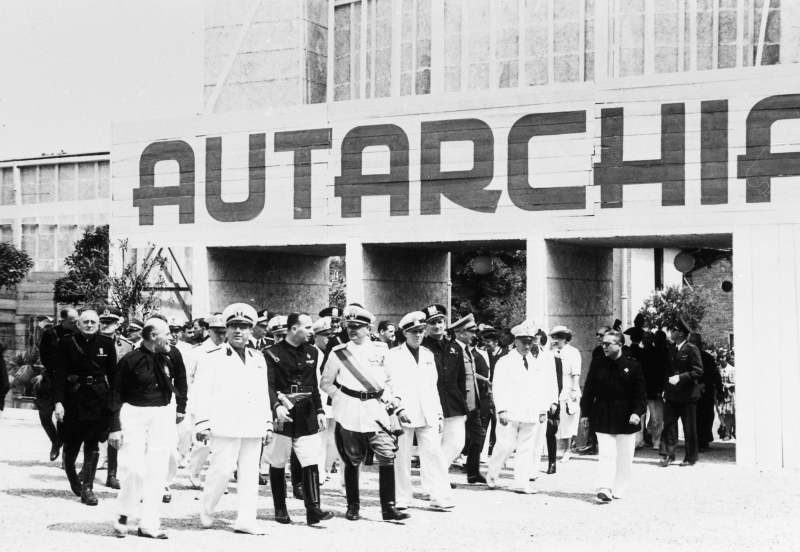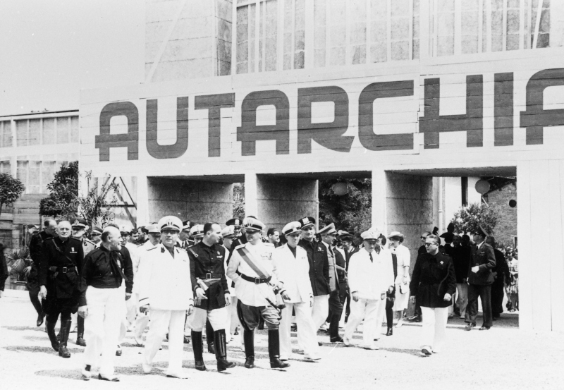 Fotografia che ritrae l'Onorevole Tassinari che inaugura la IX Settimana Faentina. Tra i presenti: il professor Roberto Sella, coordinatore della mostra, il Podestà Vincenzo Berti e il federale di Ravenna Luciano RambelliDonazione: